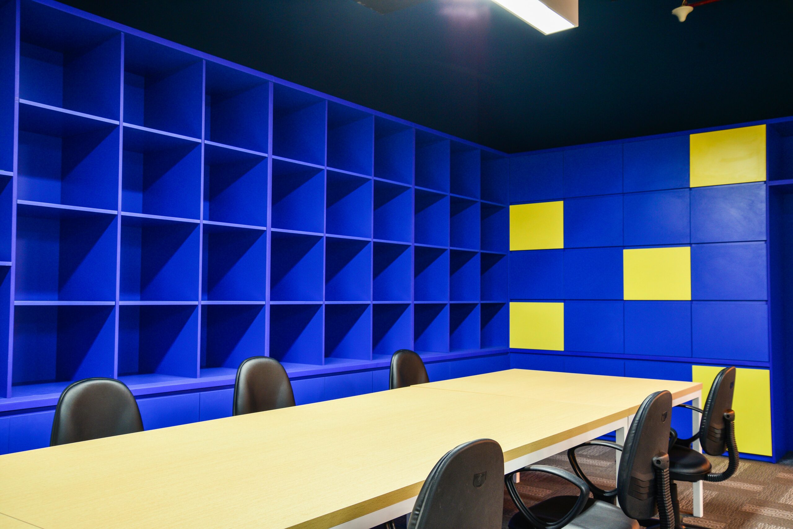Kantor modular dengan pembagian ruang kerja efisien menggunakan cubicle custom dan area meeting privat.